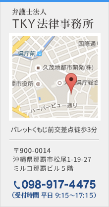 沖縄県庁近く 相続問題(遺言書・遺産分割・遺留分減殺請求・相続放棄等)はTKY法律事務所にお任せ下さい。無料法律相談を行っております。